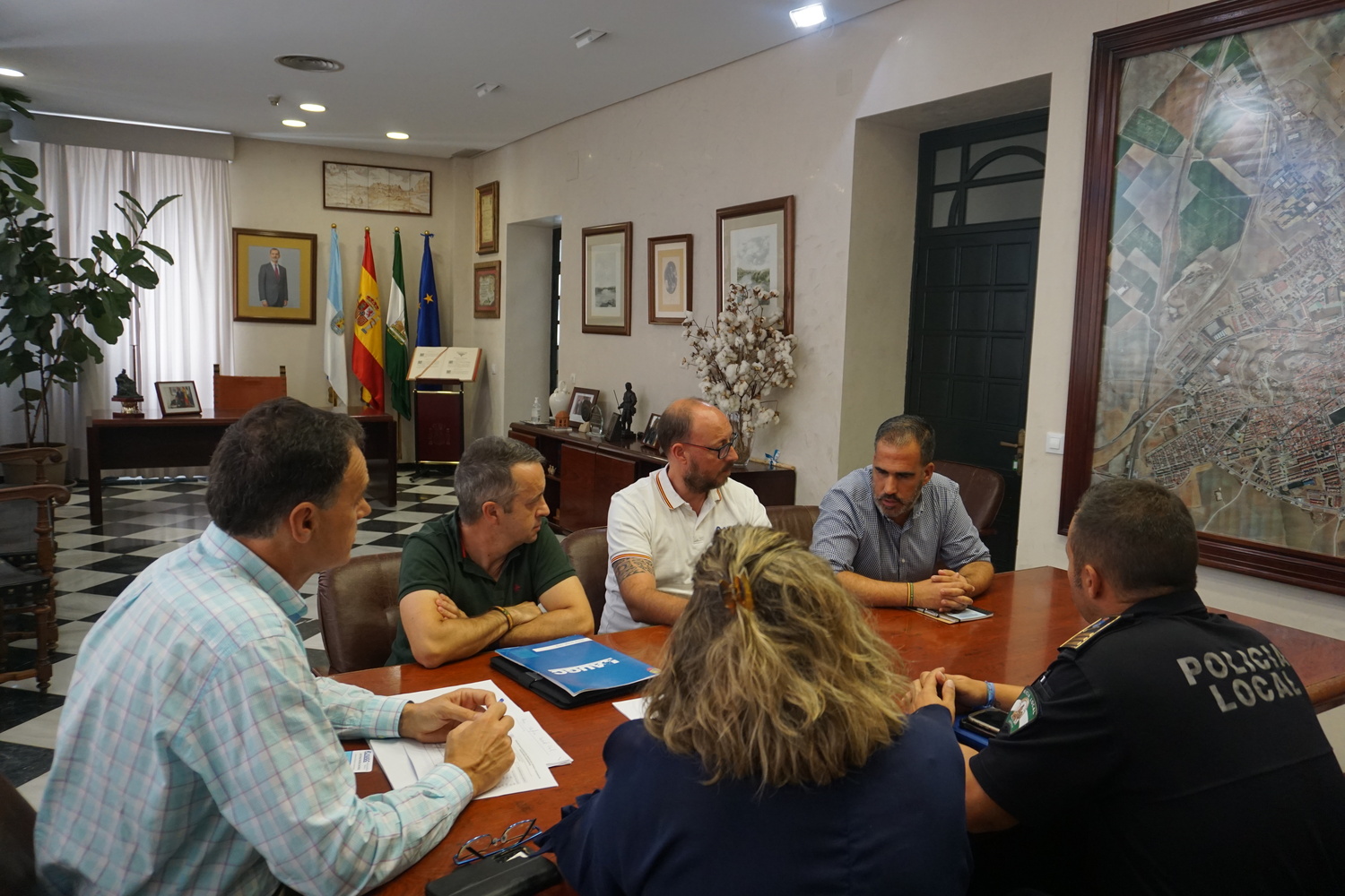 La reunión se ha celebrado en la alcaldía del consistorio lebrijano ante la presencia de la delegada de Seguridad Ciudadana y el jefe de la Policía Local de Lebrija