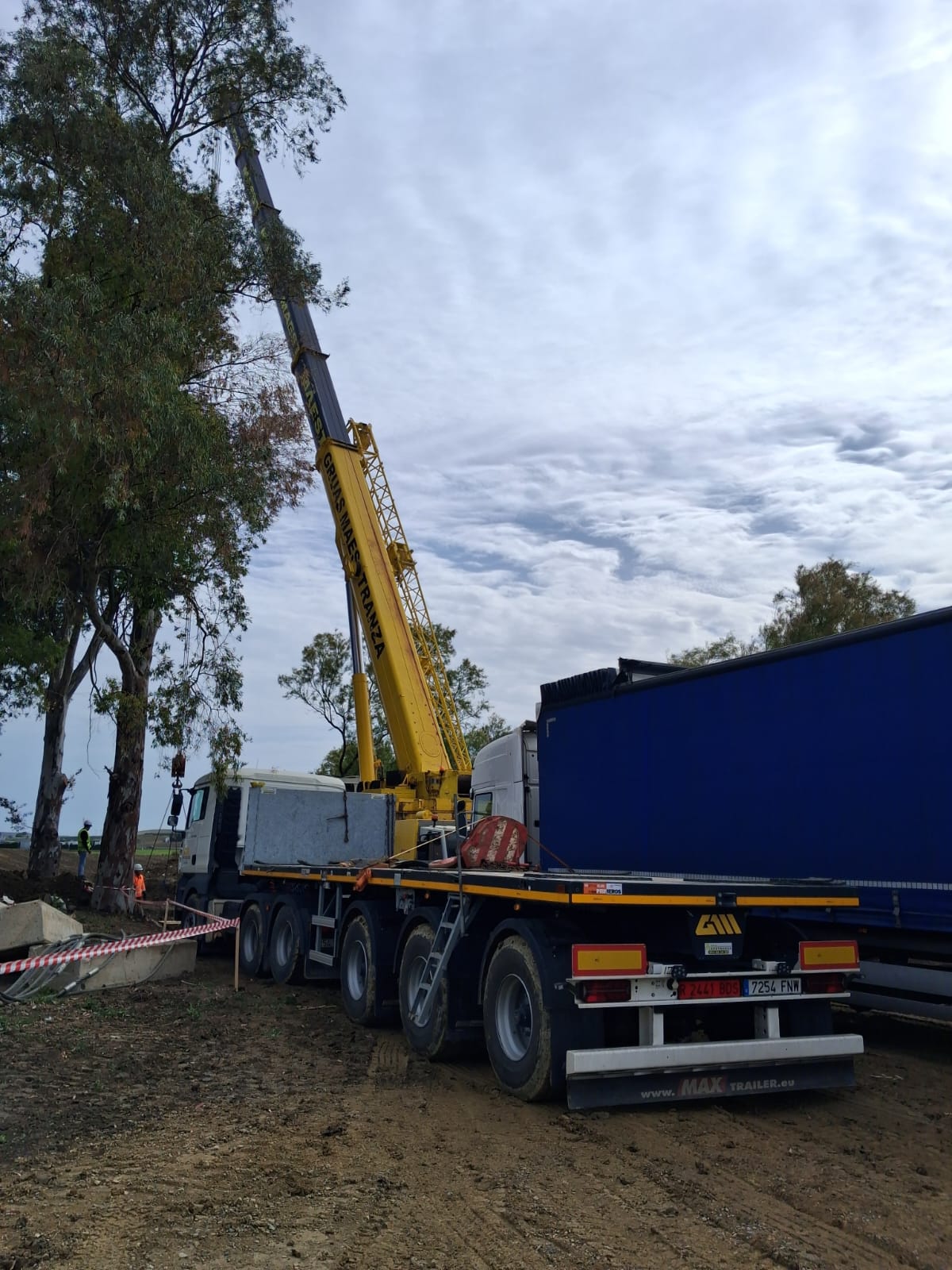 En estos momentos se está ejecutando una de las actuaciones más relevantes del proyecto, como es la construcción del paso del arroyo mediante un marco de puente, que está siendo colocado con maquinaria de gran tonelaje.