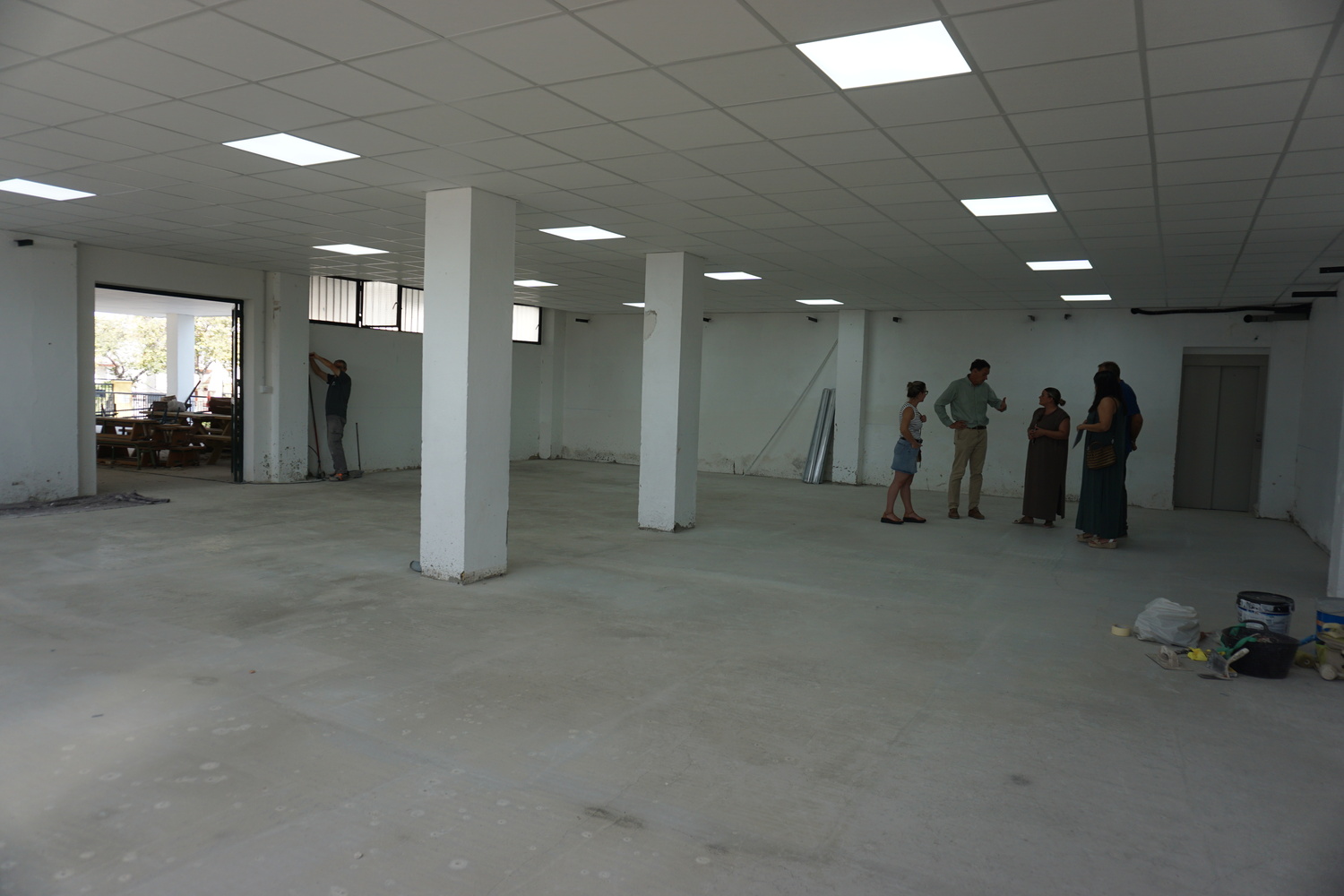 Esta mañana el alcalde de la ciudad, Pepe Barroso, la delegada de Educación, Paula García, y personal técnico de la Empresa Pública Municipal Inmuvisa han visitado unas de las obras de mejora que ejecuta, en la actualidad, la entidad pública en el CEIP Elio Antonio. En concreto, con la colaboración del AMPA del centro, se está procediendo a la remodelación del gimnasio del centro educativo donde se han realizado mejoras estructurales en la entrada, incluyendo la adaptación de puertas y la renovación del suelo con una capa de mortero autonivelante y vinilo, además de la instalación de un nuevo techo para mejorar la insonorización, junto con la renovación de la iluminación y del suelo.