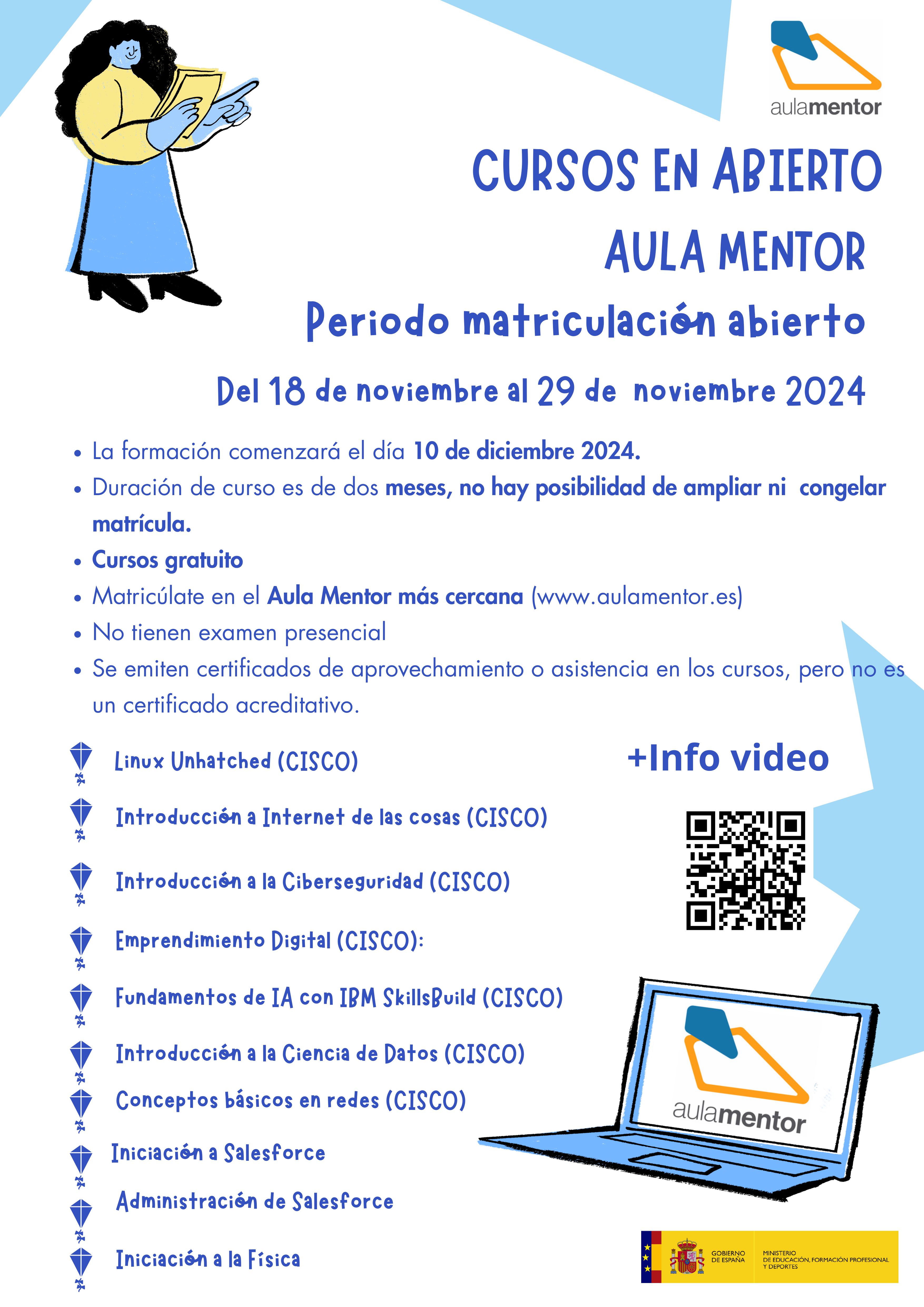 El Ayuntamiento de Lebrija, a través de la delegación de Formación, informa de la nueva convocatoria de cursos de formación gratuitos que oferta Aula Mentor.