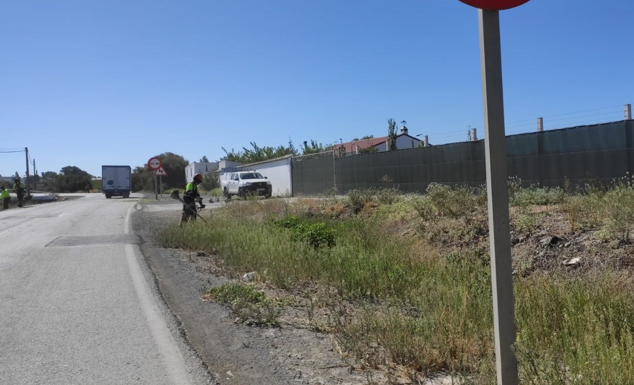 Los servicios de mantenimiento de carreteras tanto de la Diputación de Sevilla como de la Junta de Andalucía están llevando a cabo tareas de limpieza en las vías de acceso al municipio