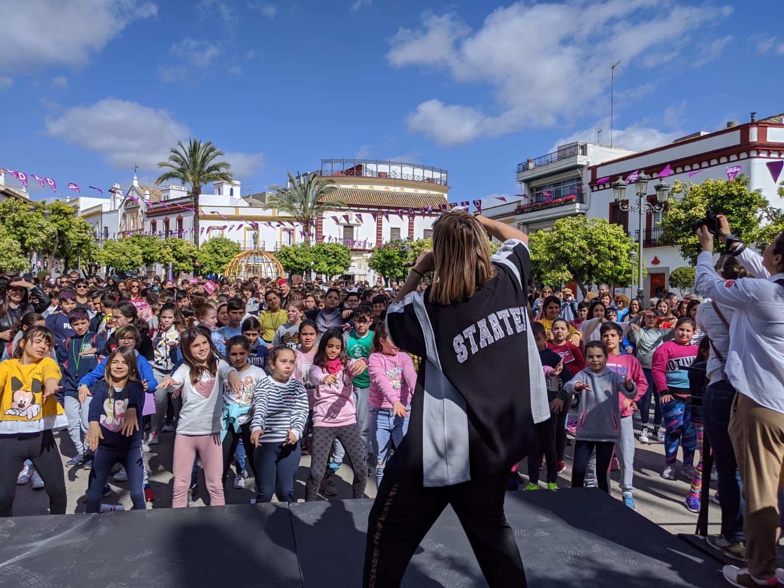 Tras la intervención del Alcalde, dos alumnas del IES El Fontanal junto a su profesora interpretaron una canción realizada por ellas misma bajo el título Mujer decides lo que vales. Todos los y las escolares portaban en sus manos banderas con el lema Lebrija por la Igualdad llenando de colorido las calles de la ciudad.