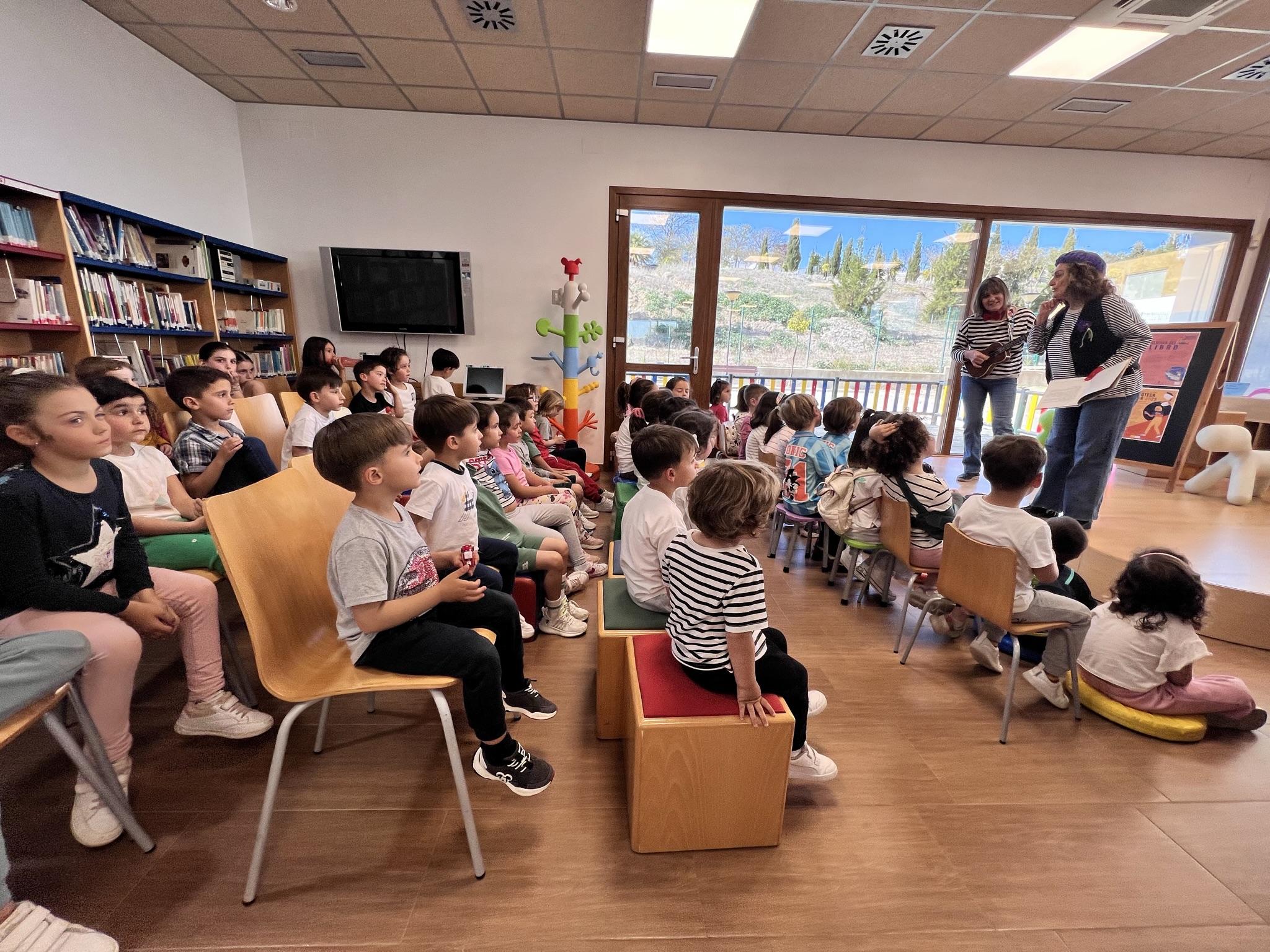 Más de 60 niñas y niños participaron en el cuentacuentos organizado el pasado miércoles, 23 de abril, con motivo del Día del Libro. La actividad, a cargo de Maica Sánchez y Antoñi Vidal, fue un éxito.