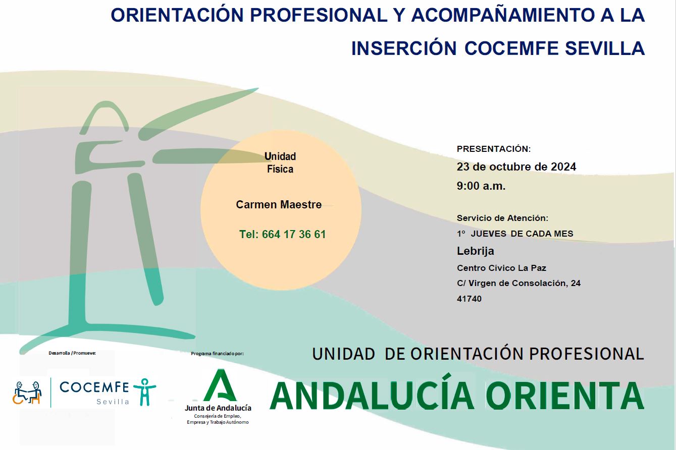 Este nuevo servicio de Andalucía Orienta para personas con diversidad funcional se ubica en el Centro Cívico La Paz y se atenderá mediante cita previa a través del teléfono 664173661 o en el propio Centro Cívico.