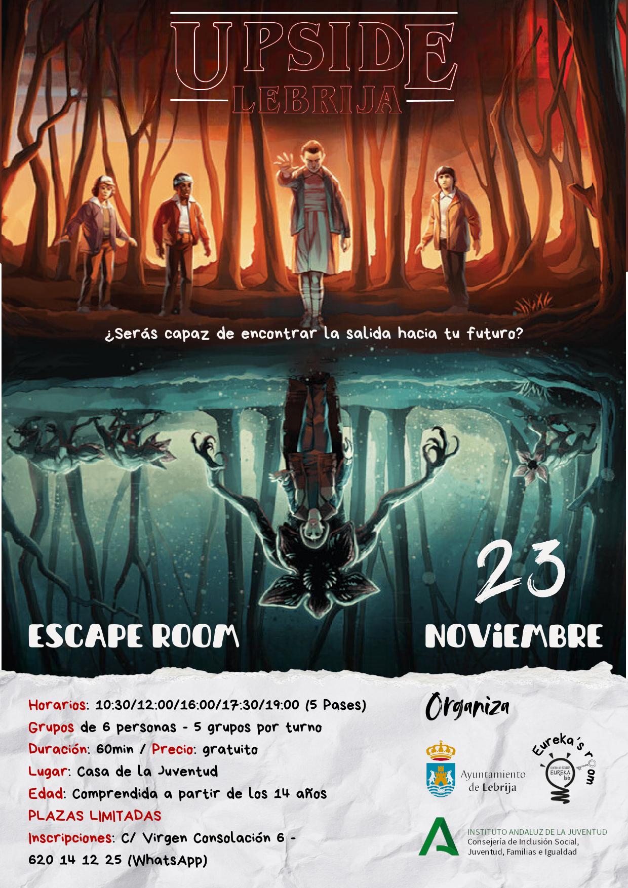 El sábado 23, se realizará el escape room “Upside Lebrija. ¿Serás capaz de encontrar la salida hacia tu futuro?”. En esta actividad podrán participar jóvenes a partir de los 14 años en grupos de hasta 6 personas.