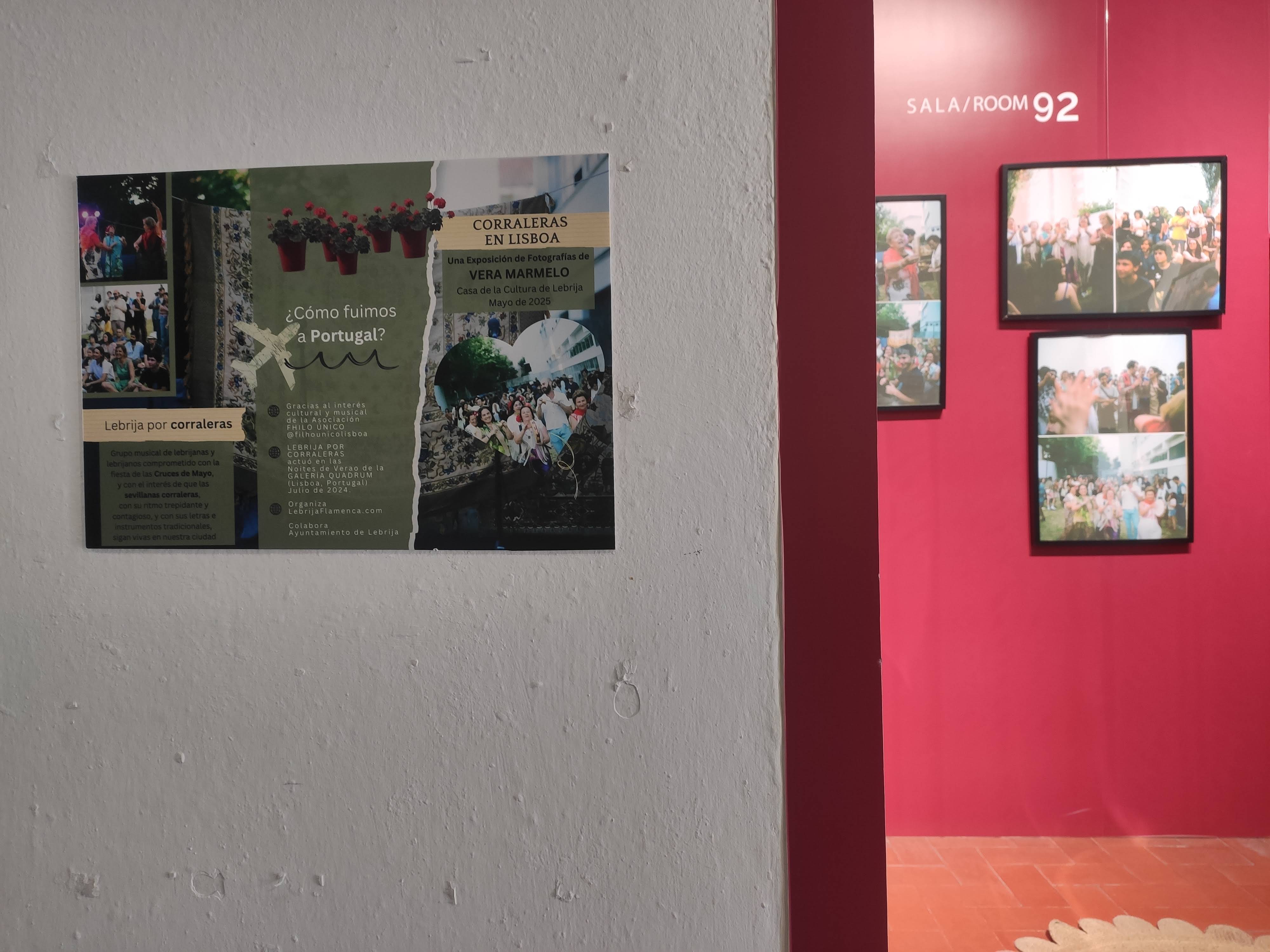 La muestra expositiva está protagonizada por el grupo de personas que forman parte del grupo musical Lebrija por corraleras, que participó en el festival Noites de Verao celebrado en Lisboa en julio 2024. Su autora refleja a la perfección lo que se vivió en ese festival de intercambio intercultural.