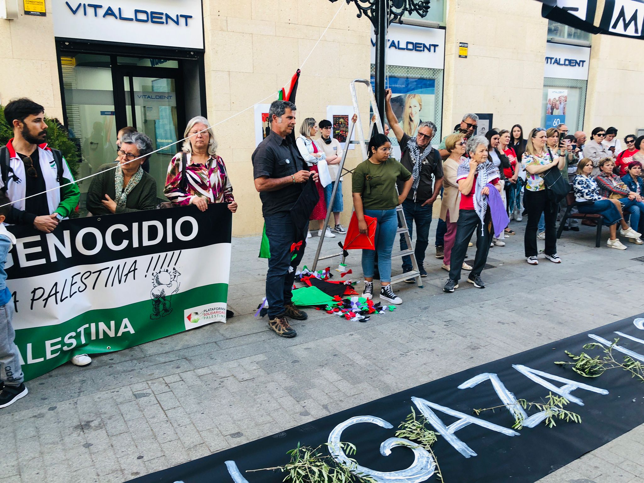 Compartimos imágenes de la concentración celebrada el pasado viernes, 17 de mayo, exigir el fin del genocidio en Palestina, que está provocando la muerte de miles de niños, niñas, mujeres y personas mayores en Palestina.