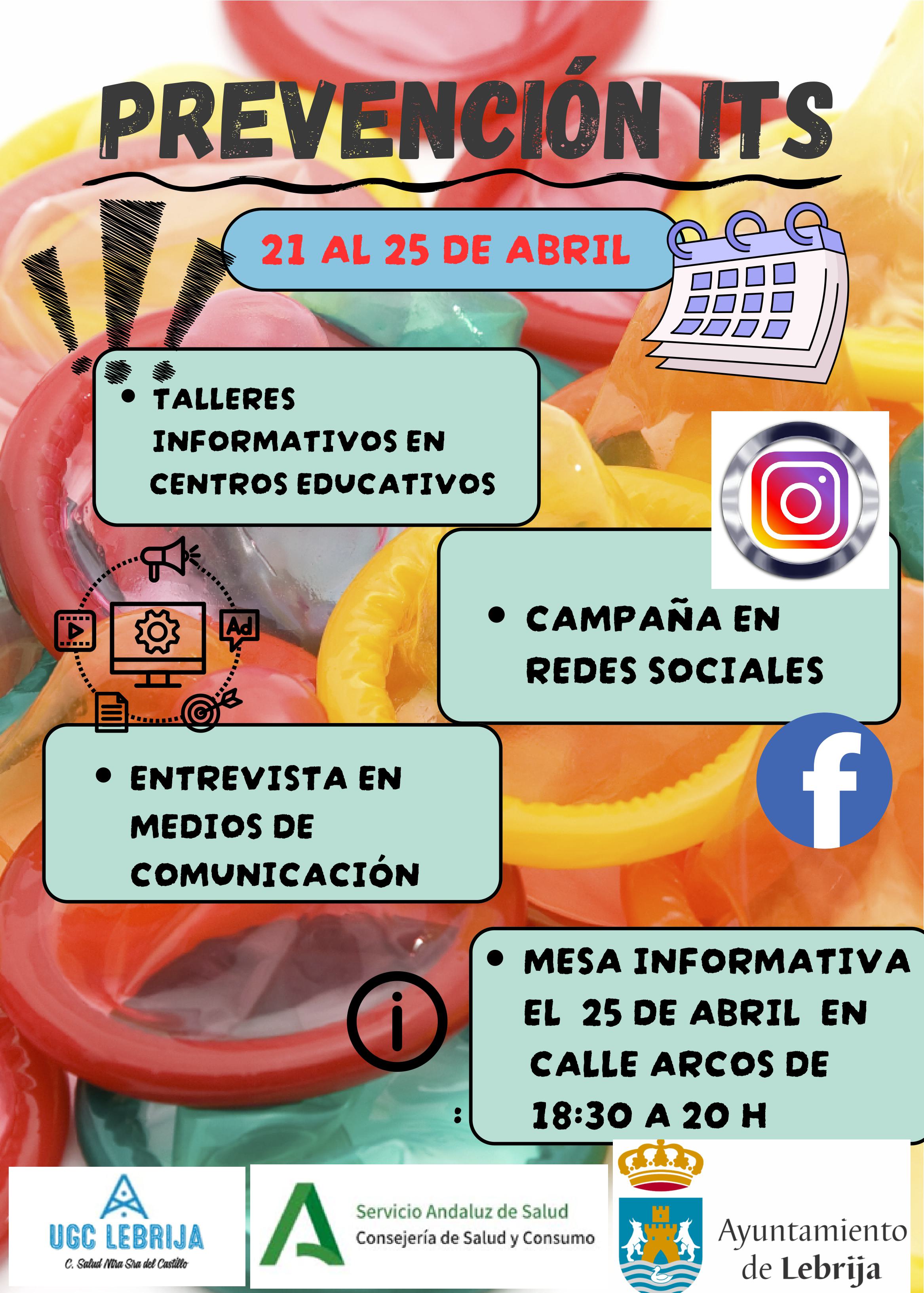 Por otra parte, la campaña contempla su publicación en los medios tradicionales, digitales y redes sociales; entrevistas en medios de comunicación con los responsables sanitarios del Centro de Salud de Lebrija del programa de ITS; Y, por último, instalación de una mesa informativa sobre los métodos de prevención y la actuación ante un diagnóstico de ITS. En concreto se ubicará la calle Arcos en horario de 18:30 a las 20:00 horas. En la misma participarán profesionales sanitarios.