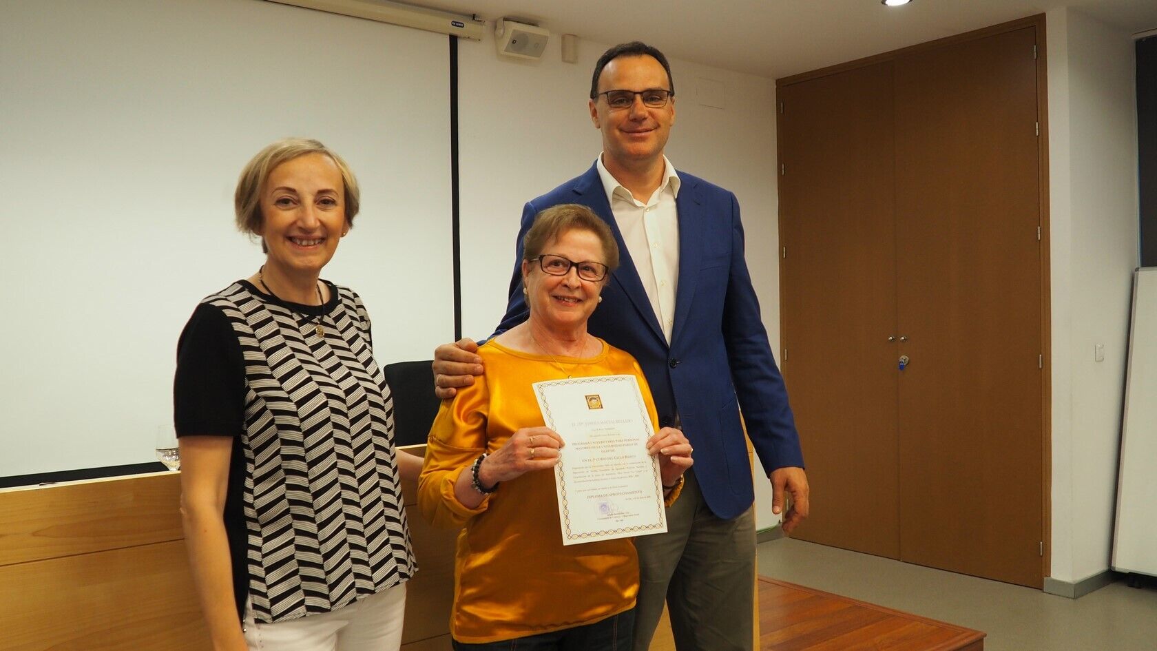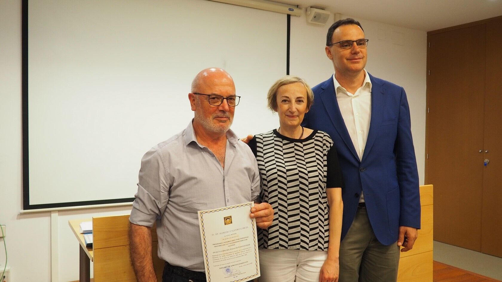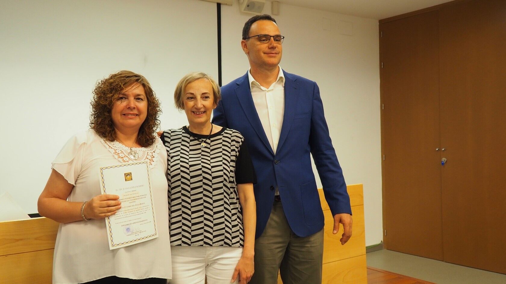 El acto de clausura también contó con la entrega de diplomas, la intervención de representantes de cada grupo para agradecer el trabajo de todos aquellos agentes implicados en la puesta en marcha del Aula Abierta de Mayores, como son la Universidad Pablo de Olavide, la Diputación de Sevilla y el Ayuntamiento de Lebrija, y la proyección de la obra ‘Grano a grano se hace granero’, un trabajo hecho por el alumnado y ya expuesto en la propia Universidad, dedicado a los objetivos en materia de desarrollo sostenible.