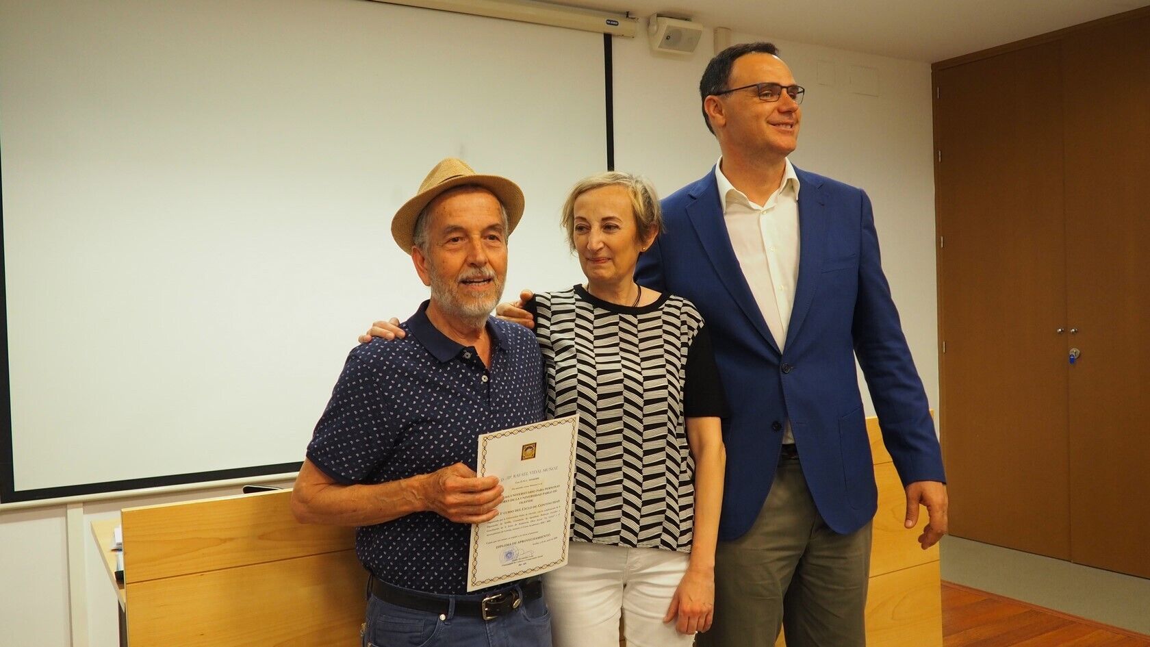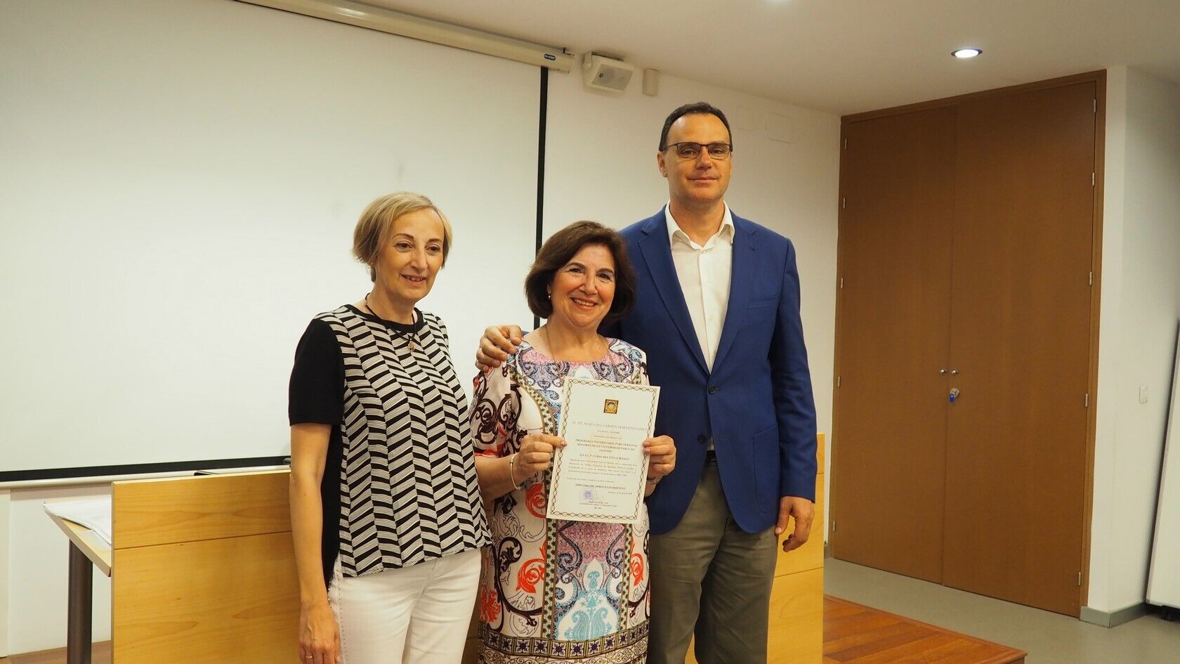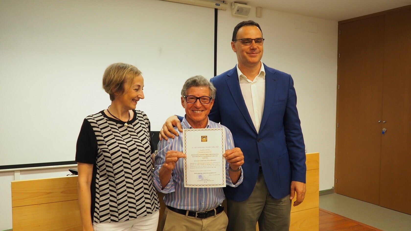 El acto de clausura también contó con la entrega de diplomas, la intervención de representantes de cada grupo para agradecer el trabajo de todos aquellos agentes implicados en la puesta en marcha del Aula Abierta de Mayores, como son la Universidad Pablo de Olavide, la Diputación de Sevilla y el Ayuntamiento de Lebrija, y la proyección de la obra ‘Grano a grano se hace granero’, un trabajo hecho por el alumnado y ya expuesto en la propia Universidad, dedicado a los objetivos en materia de desarrollo sostenible.