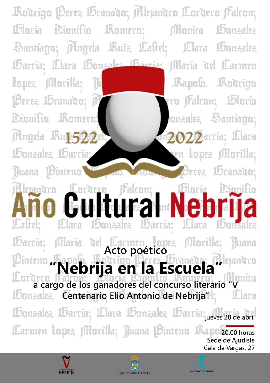 En esta ocasión, el alumnado premiado en el concurso literario " V centenario Elio Antonio de Nebrija" compartirá con el público asistente sus creaciones literarias con el insigne humanista como protagonista.