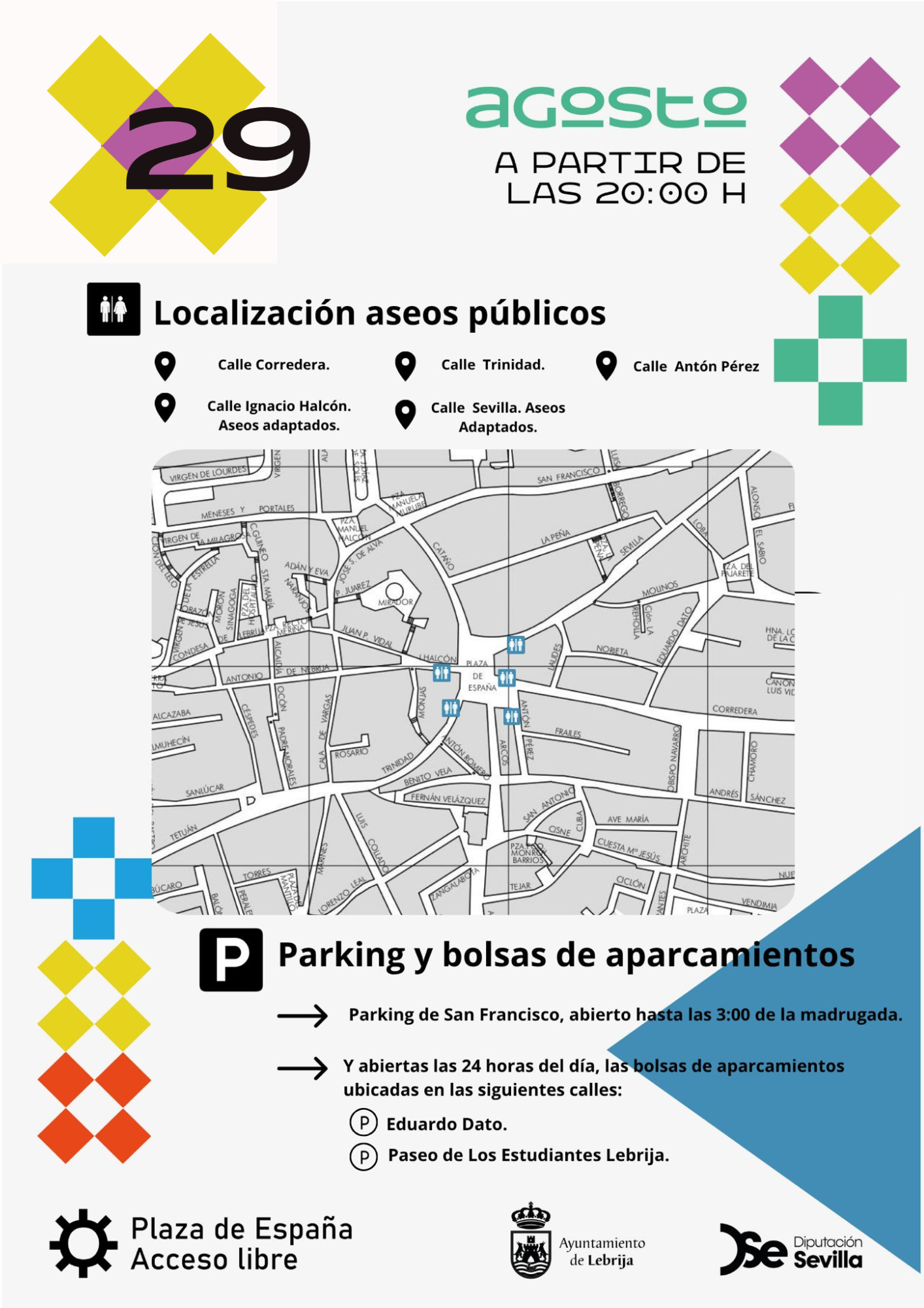 Coincidiendo con el Plaza Sound, la noche del 29 de agosto, en horario de 19:00 a 24:00 h, se celebrará un mercado al aire libre en la Calle Arcos, una iniciativa de Apyme en colaboración con el Ayuntamiento de Lebrija y en la que participarán los siguientes comerciantes y emprendedores locales: