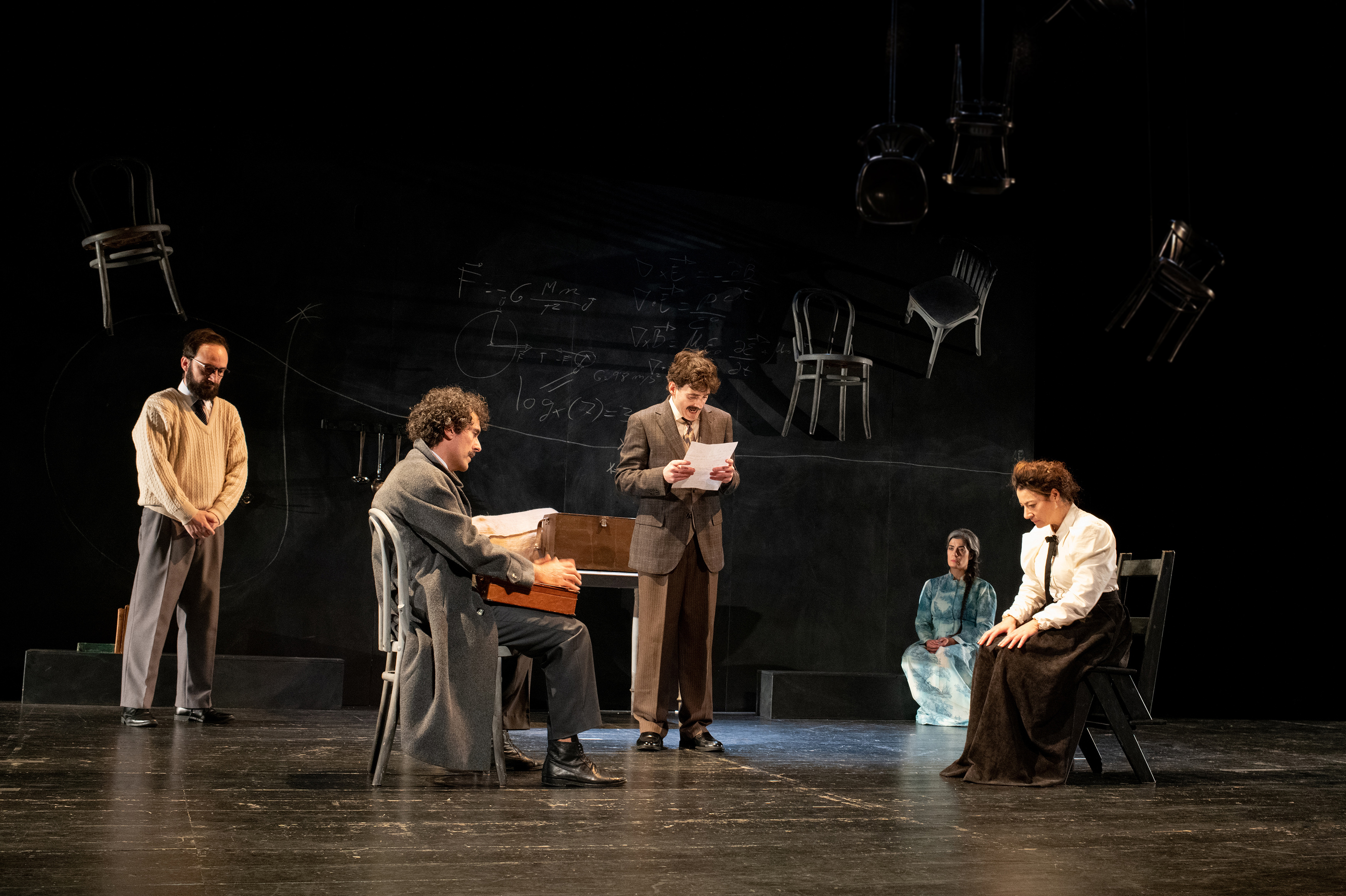 Señora Einstein es un espectáculo multidisciplinar en el que todos los aspectos de la puesta en escena están vinculados al mundo de la matemática y la física, acercándonos a tan interesante personaje con nutrido elenco y de una forma lúdica, atractiva y llena de belleza. ◊