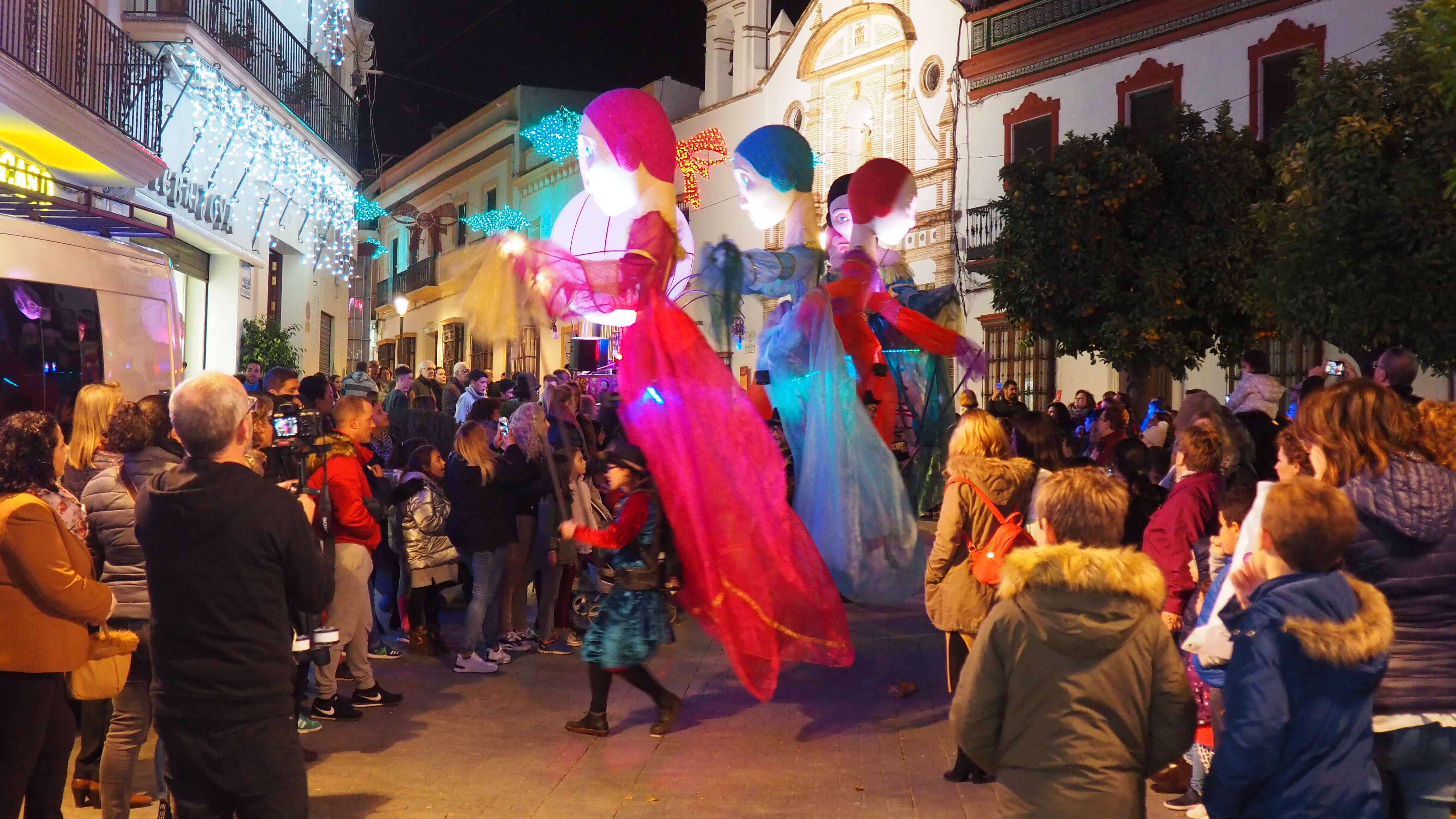 El acto de inauguración del alumbrado estuvo amenizado por el pasacalles gigantes luminoso, toda una invitación a vivir la Navidad en un ambiente de armonía y paz. También participó el coro de la Peña Flamenca "Somos de Lebrija".