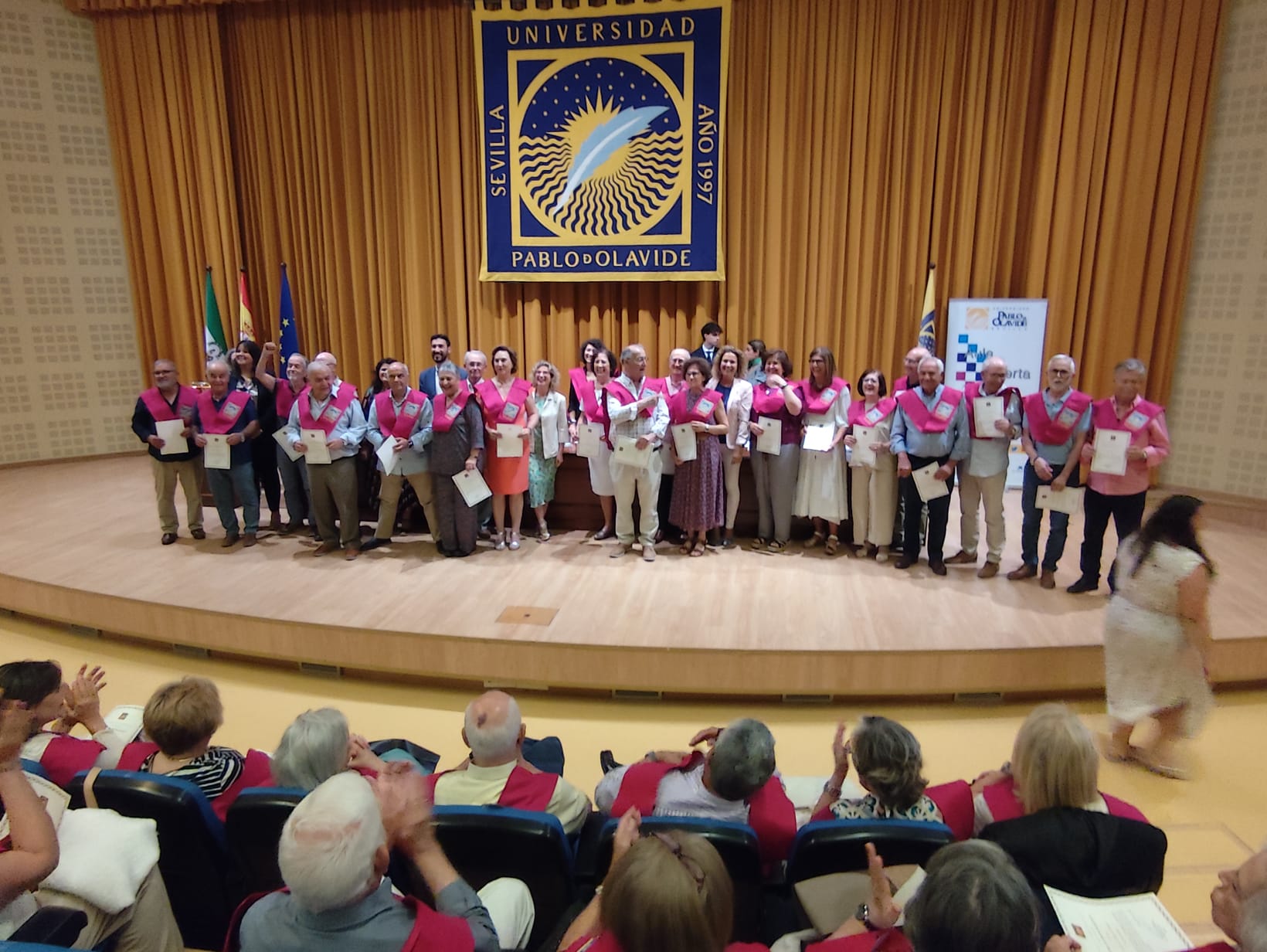 El pasado lunes, 10 de junio, en el Paraninfo de la Universidad Pablo de Olavide, se celebró la ceremonia de clausura del presente curso 2023/24 del Programa Aula Abierta de Mayores que promueve la universidad sevillana en la que se graduaron los alumnos y alumnas de cuarto curso de cuatro localidades de la provincia: Bormujos, Castilleja de la Cuesta, Herrera y de Lebrija.