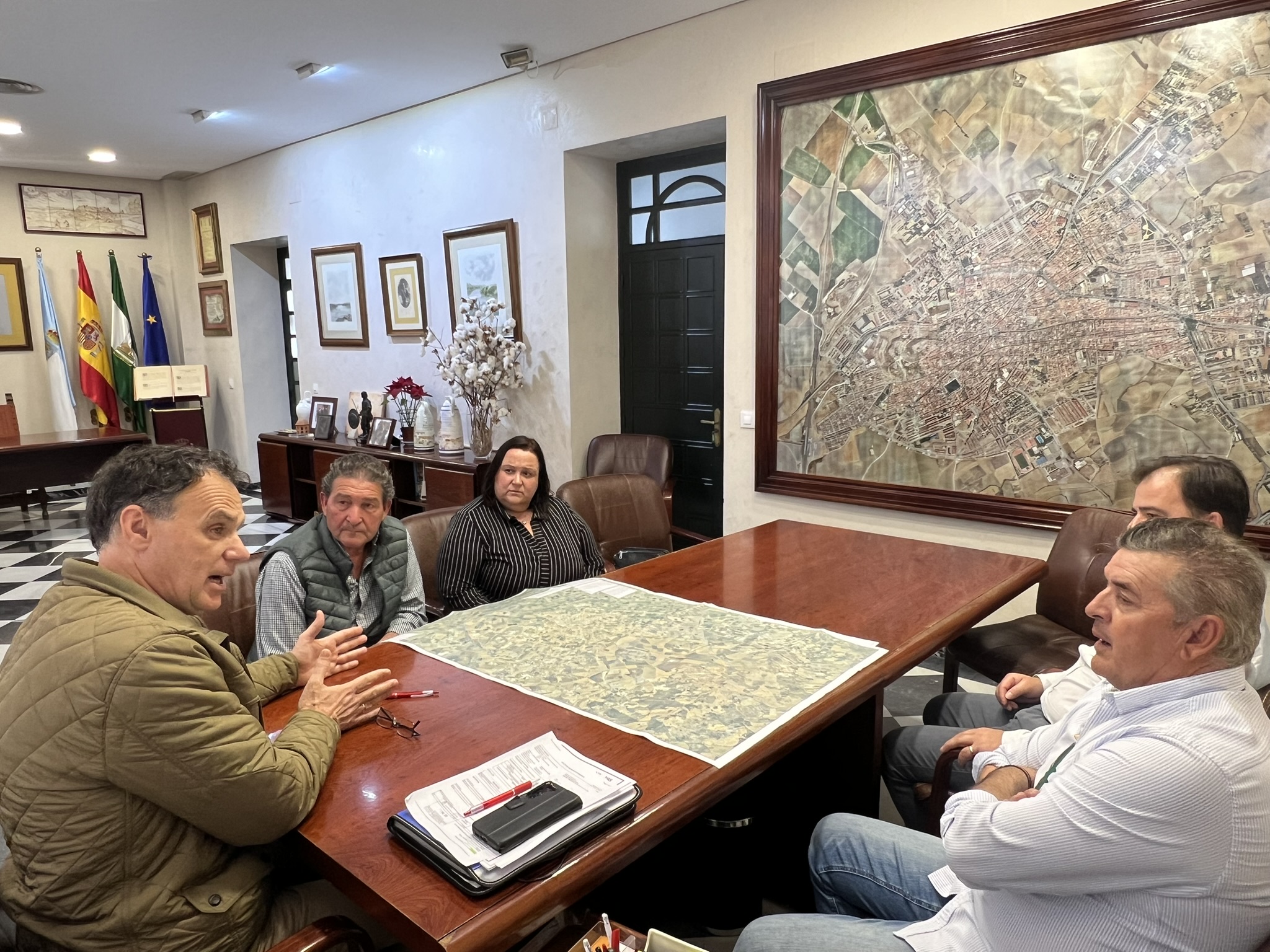 Por su parte, el alcalde se mostró receptivo ante las demandas planteadas y destacó la importancia de mantener una comunicación directa con los colectivos vinculados al sector agrario, fundamental para la economía local. Asimismo, explicó que el Ayuntamiento ha solicitado a la Junta de Andalucía la reparación de 24 caminos rurales del término municipal dentro del Plan de actuaciones de emergencia para la reparación de caminos rurales e infraestructuras hidráulicas colectivas de riego, impulsado por la Consejería de Agricultura, Pesca, Agua y Desarrollo Rural tras los daños provocados por las borrascas registradas en los últimos meses. En este sentido, señaló que el objetivo de esta solicitud es mejorar la accesibilidad a las explotaciones agrarias, reforzar la seguridad de los caminos y recuperar infraestructuras esenciales para el desarrollo de la actividad agrícola.
