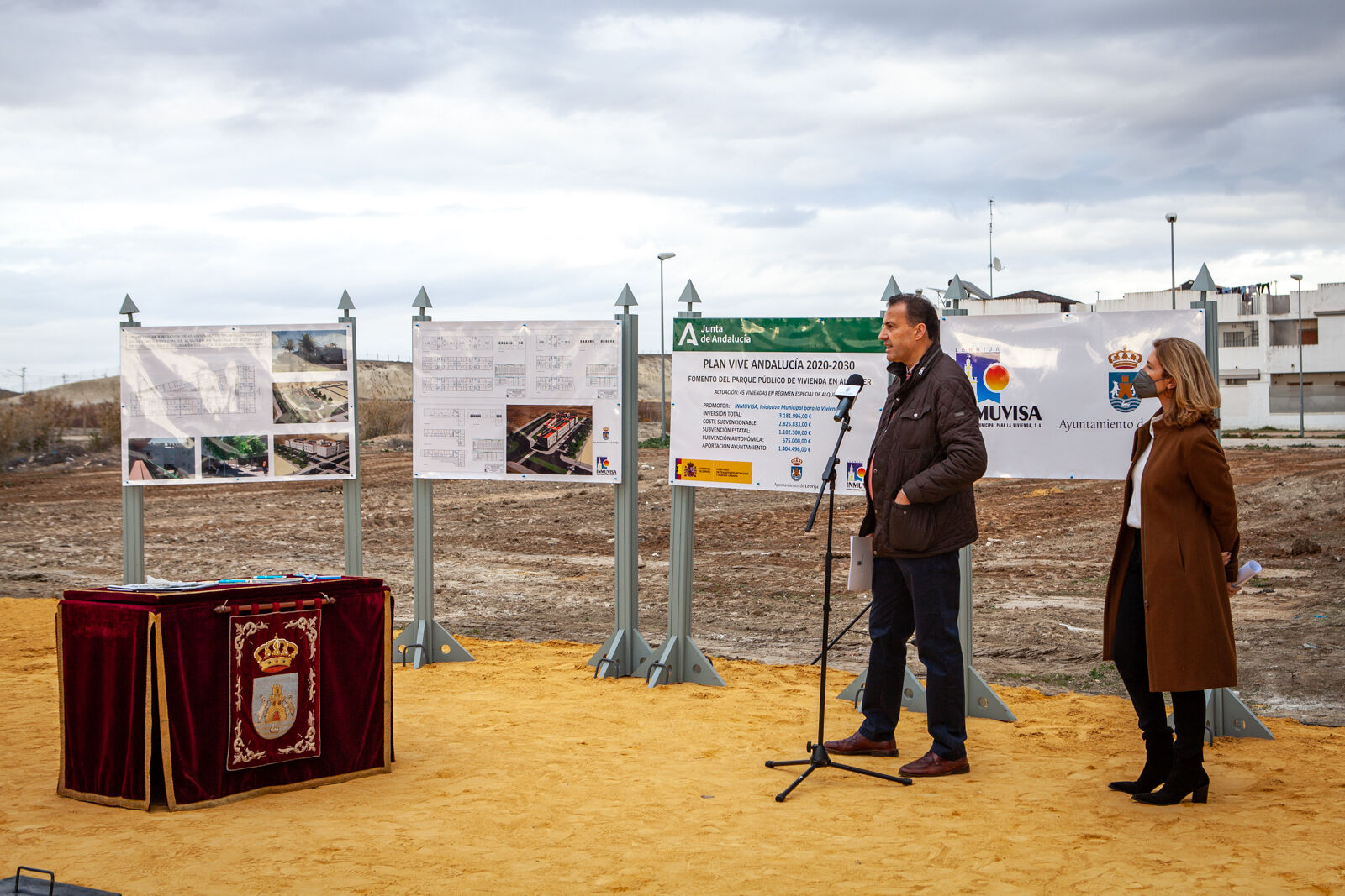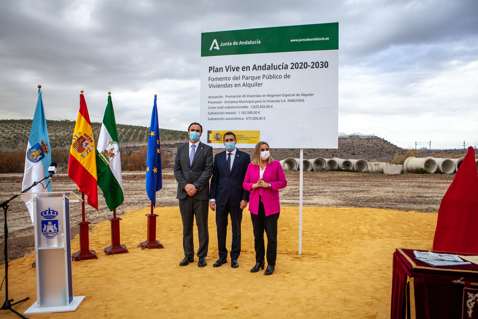 Las obras de construcción de la promoción de 45 viviendas en calle Caleta en régimen de alquiler dieron comienzo oficialmente ayer, miércoles 26 de enero, con la colocación de la primera piedra, un acto que fue presidido por el Delegado del Gobierno en Andalucía, Pedro Fernández, la consejera de Fomento, Infraestructuras y Ordenación del Territorio, Marifrán Carazo, y el alcalde de Lebrija, Pepe Barroso.