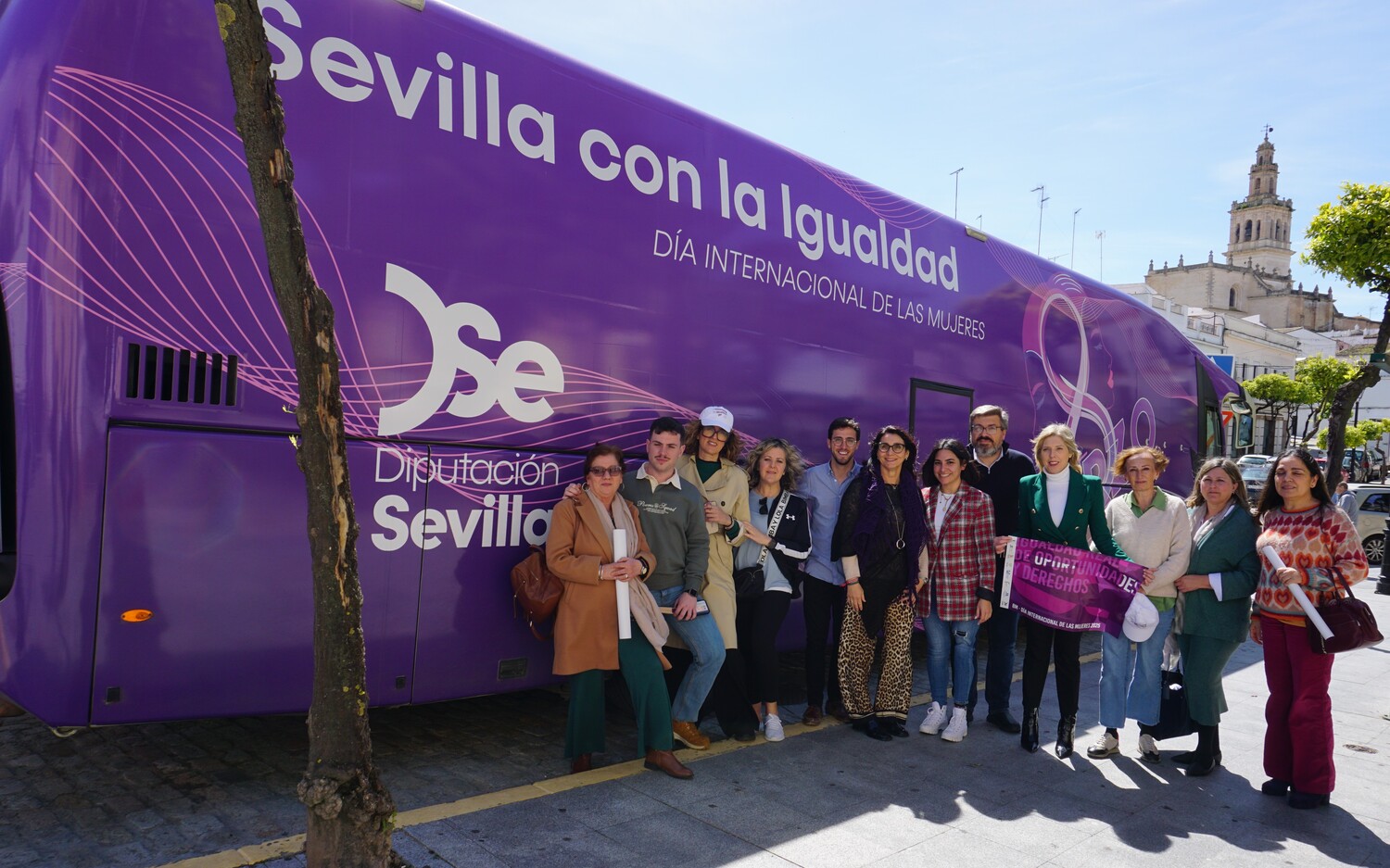 Con el objetivo de visibilizar y reforzar el compromiso institucional con la igualdad real de oportunidades y derechos para las mujeres, un autobús publicitario y una furgoneta de la Diputación de Sevilla recorren la provincia