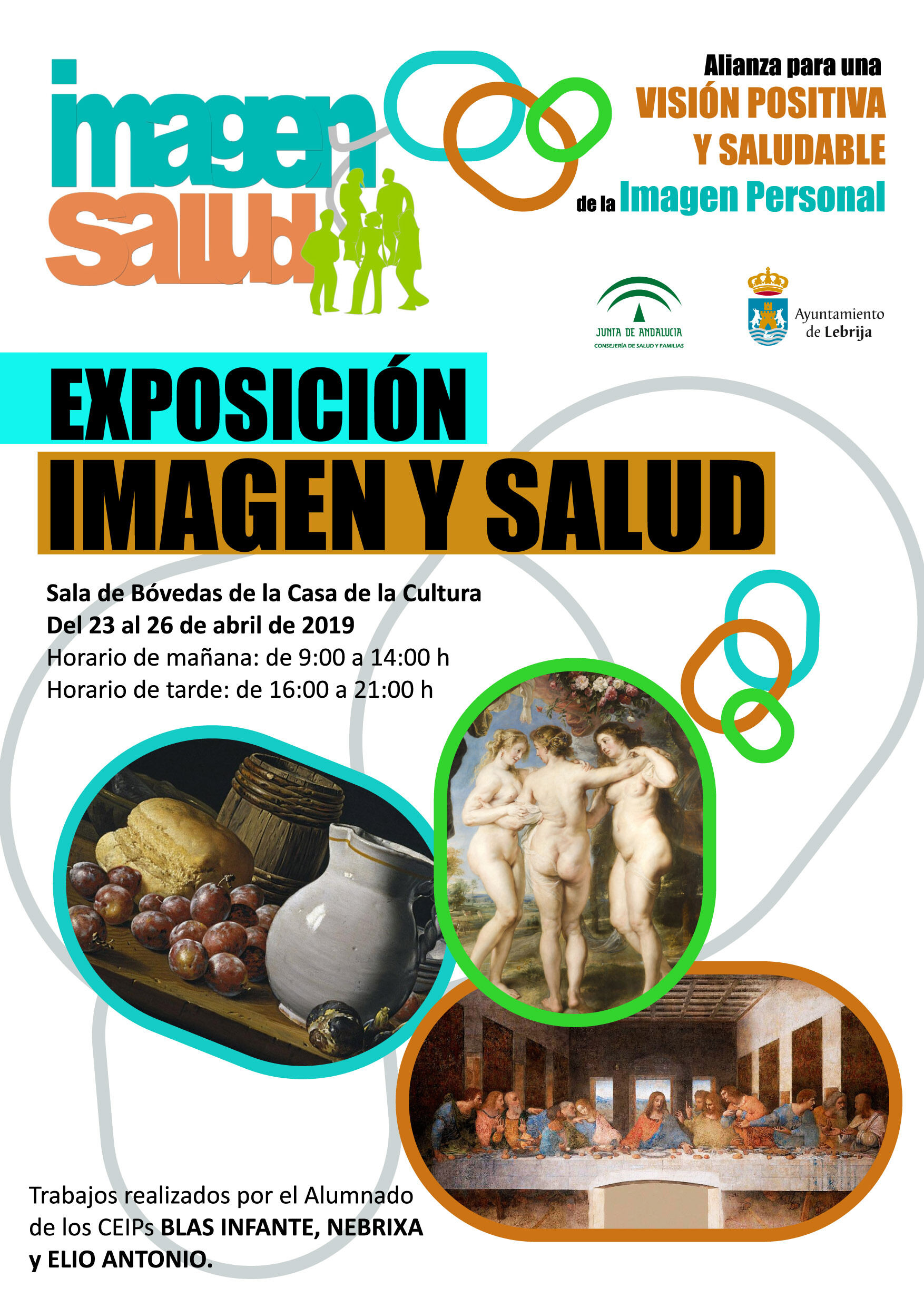 Esta muestra, organizada por la Delegación de Salud y la Delegación de Educación del Ayuntamiento de Lebrija, expondrá los trabajos realizados por los alumnos y alumnas de los CEIP Elio Antonio, Blas Infante y Nebrixa, tratándose de unas obras que reflejan el cuerpo humano, reflejan situaciones sociales que están vinculadas a la comida y al acto de comer, ya sean escenas relacionadas con la preparación de la comida y otras que reflejen lo que actualmente llamamos alimentos saludables como frutas, verduras o pescado.