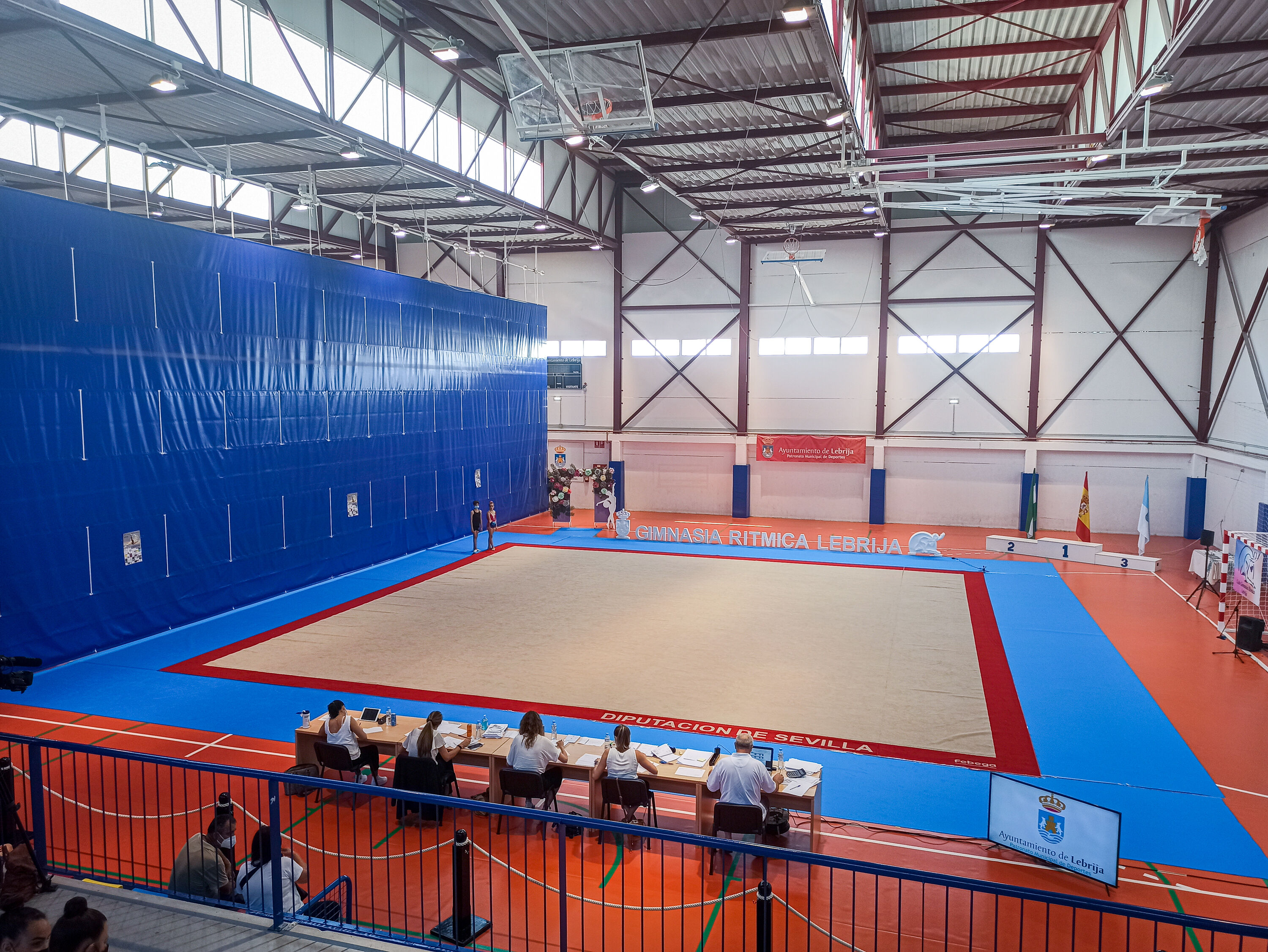 En esta ocasión ha cedido al Patronato Municipal de Deportes del Ayuntamiento de Lebrija un tapiz de Gimnasia Rítmica de tamaño 14x14 metros, con las siguientes características: moqueta de soft poliéster 100%, resistente a la abrasión, reforzado en los laterales, con 0,9 mm de espesor, además de 2 carros porta-tapices.