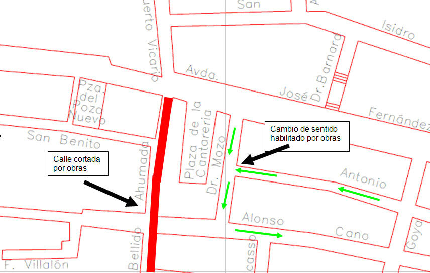 El Ayuntamiento de Lebrija informa que a partir de mañana, martes 22 de enero, cambiará de sentido la calle Doctor Mozo como consecuencia de las obras de mejora que está ejecutando en las calles Alonso Cano y José Bellido Ahumada. Este cambio en el tráfico rodado permitirá el acceso a los vecinos y vecinas de la zona, además de dar fluidez al tráfico rodado. De la misma forma se recuerda que está vigente el corte de la calle Alonso Cano desde su inicio hasta la intersección con la calle José Bellido Ahumada, debido a las citadas obras de remodelación y mejora del alcantarillado y pavimentación de la misma. Por tanto, los vehículos que provenga de la calle Andrés Sánchez de Alva deberán girar obligatoriamente en la calle Almenas. Las personas que quieran dirigirse en vehículo a la zona Este de la ciudad podrán hacerlo, entre otros recorridos alternativos, por las calles Almenas, Párroco Manuel Maestre y Avenida José María Tomasetti.