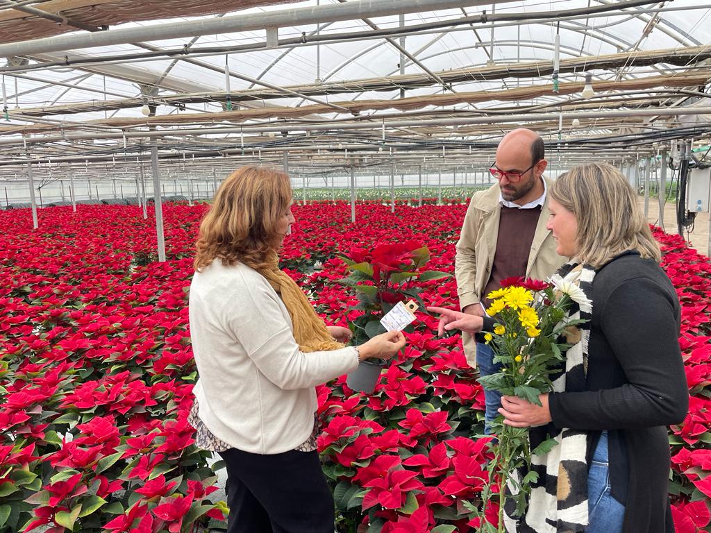Una representación del equipo de gobierno municipal conformada por los delegados de Consumo, Participación Ciudadana y Comunicación, visitaron esta semana uno de sus invernaderos para conocer in situ el proceso de selección, comercialización, distribución y venta de este producto tan navideño.