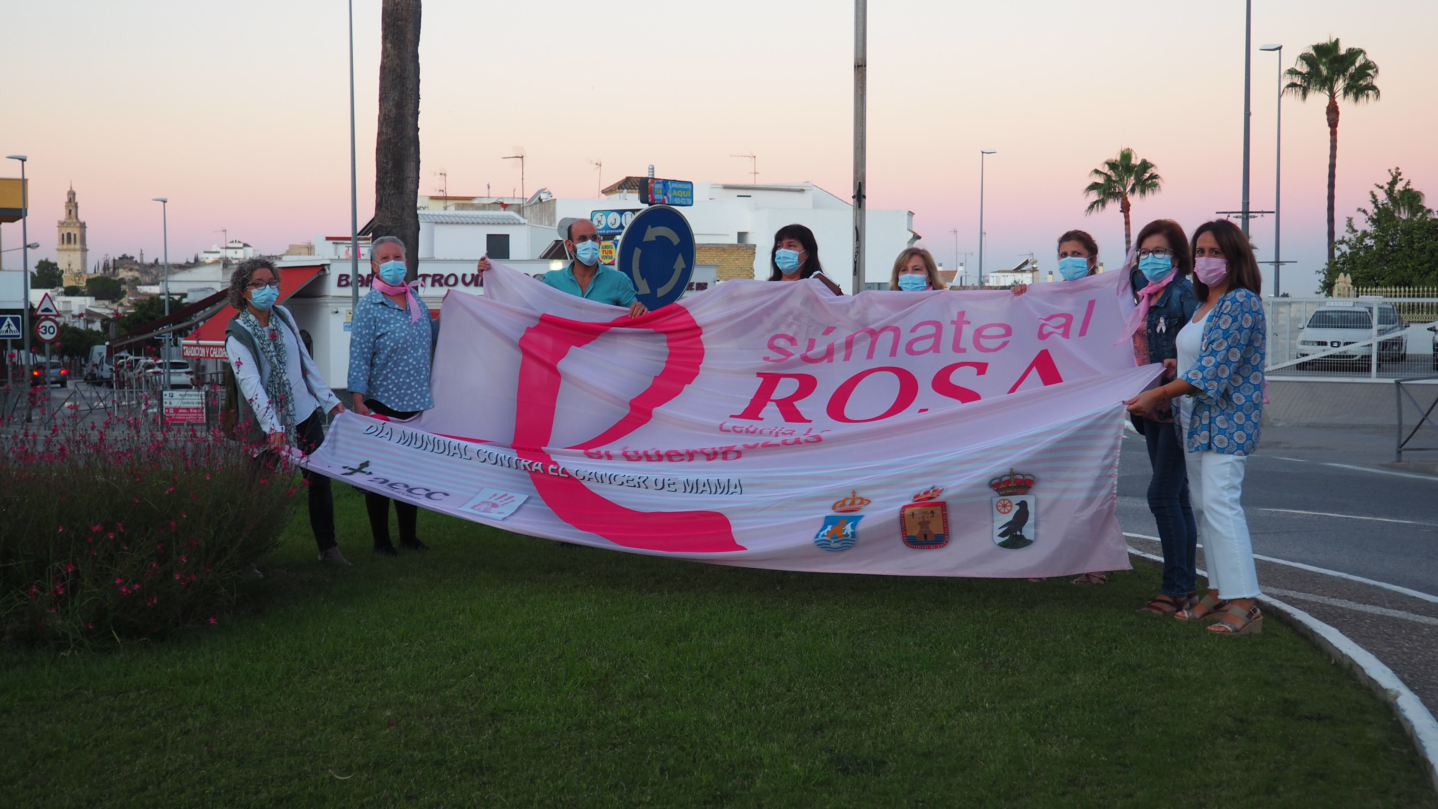 Desde esta mañana - al unísono en los tres municipios citados- se ha izado la bandera de la AECC en lugares emblemáticos de cada municipio. En Lebrija se ha alzado en la conocida rotonda de Pedro Bacán, ubicada en un lugar estratégico. Tras ello, en torno a las 12:00 horas se ha procedido a la lectura de un manifiesto público en las inmediaciones de la Plaza de España. El acto ha contado con la presencia de voluntarias de la Asociación y representantes municipales.