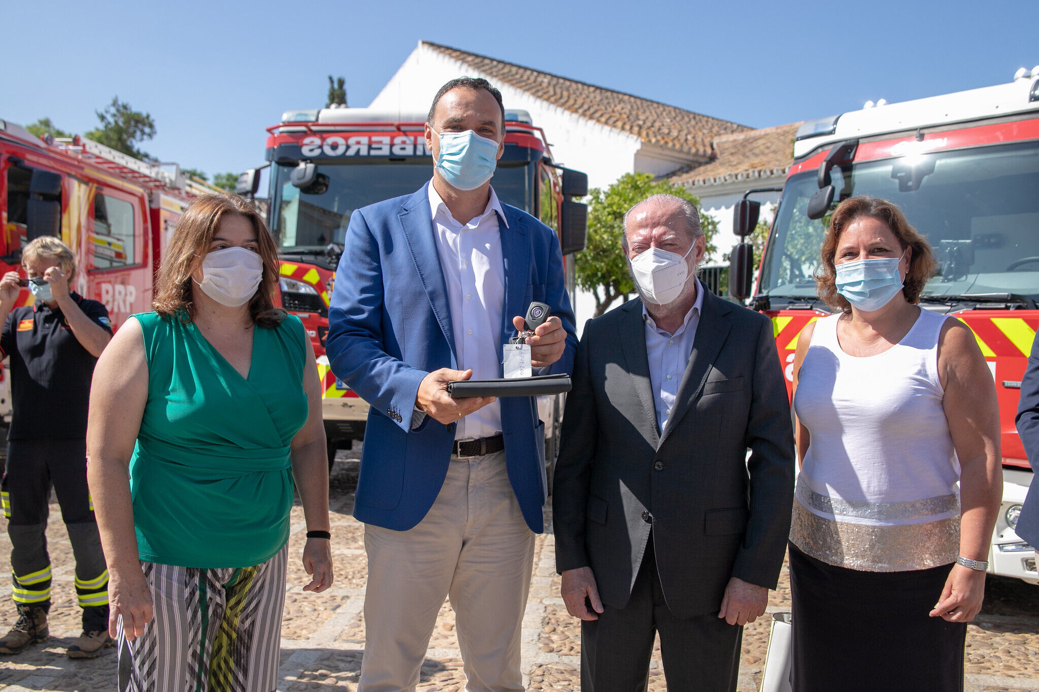 El Alcalde de Lebrija, Pepe Barroso, y la Diputada del Área de Hacienda y Concertación y Delegada de Seguridad Ciudadana del Ayuntamiento de Lebrija, María Regla Martínez, han estado presentes en el acto celebrado en el Cortijo de Cuarto y que ha estado presidido por el presidente de la Diputación de Sevilla, Fernando Rodríguez Villalobos, entidad que realiza la dotación con el objetivo de implementar así el Sistema de Bomberos de la Provincia en materia de atención a la emergencia. Además, en el mismo han estado presentes los representantes municipales de los pueblos y ciudades beneficiarios.