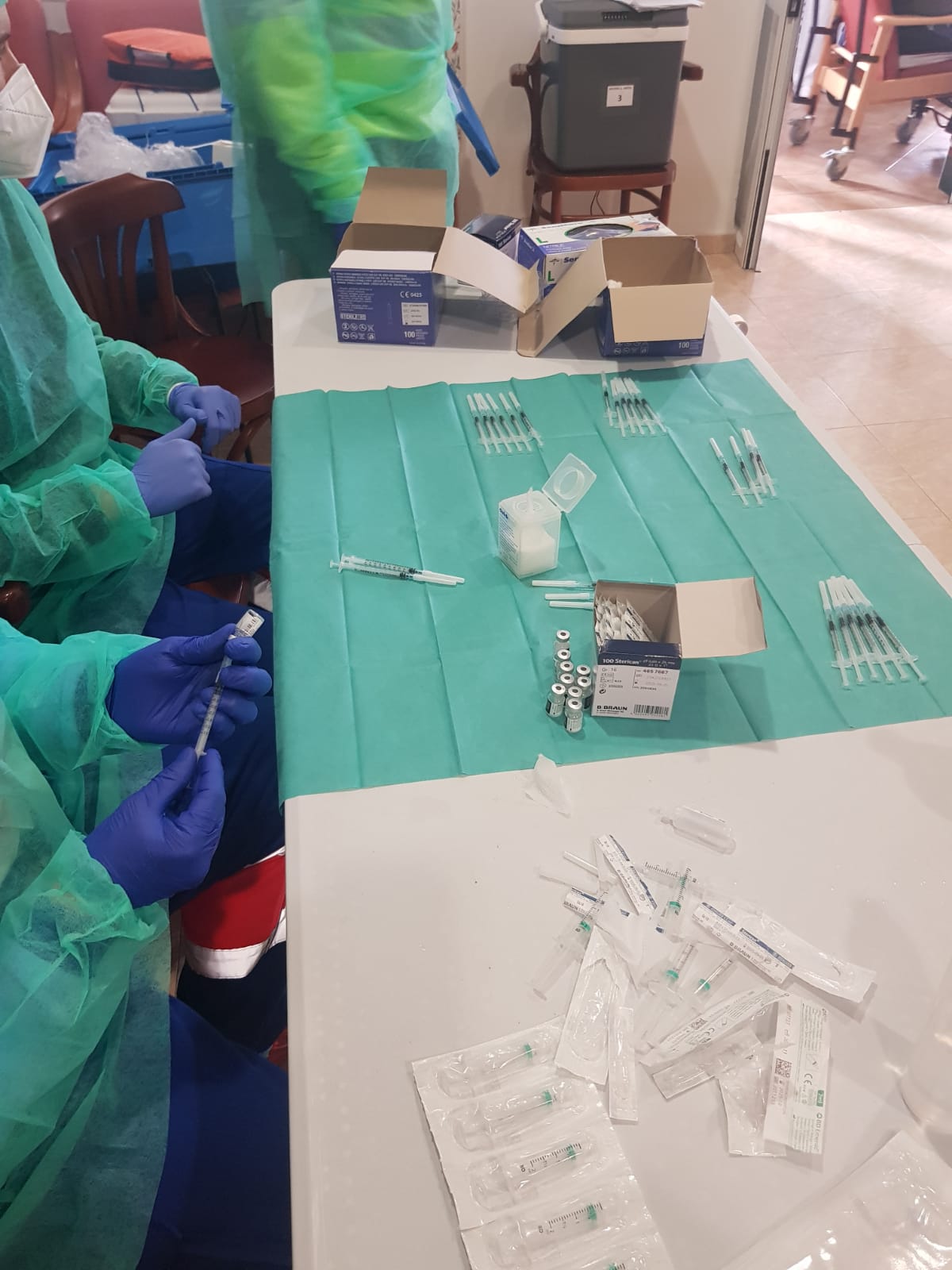 A lo largo de todo el día de hoy serán administradas en Lebrija un total de 144 dosis dirigidas a los grupos de riesgos que incluyen a residentes y profesionales de las dos residencias de mayores de nuestra ciudad. Por un lado, serán vacunados , un total de 90 residentes (49 usuarios del Asilo de San Andrés y 41 de la residencia de la Caridad usuarios/as). Por otro lado, se administrará la segunda dosis de la citada vacuna al conjunto de trabajadores y trabajadoras que conforman estas residencias, es decir, 54 profesionales (27 profesionales pertenecen al Asilo de San Andrés y 27 a la Caridad).