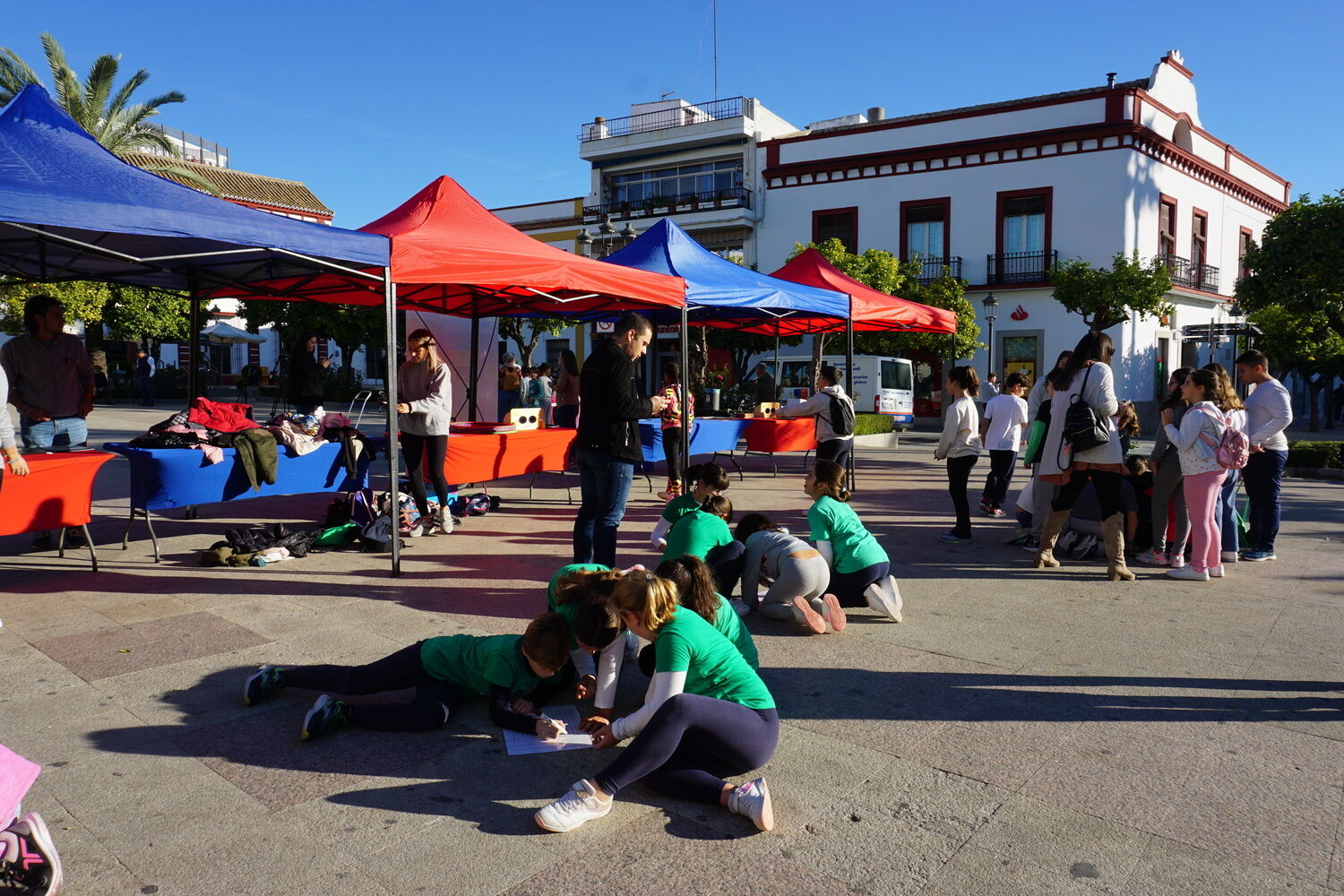 A la jornada asisten un total de 300 alumnos y alumnas de 4º de Educación Primaria de los distintos centros escolares de Lebrija. En ella, están realizando una gymkana para lograr formar el mural de los derechos de los niños, niñas y adolescentes.